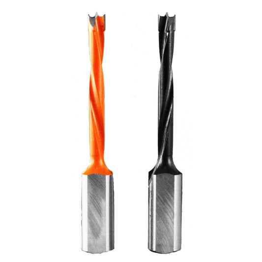 7mm Dia, Carbide Tipped, Brad Point Dowel Drill, 2 Flute Body, RH, 10mm Shank, 57.5mm Length